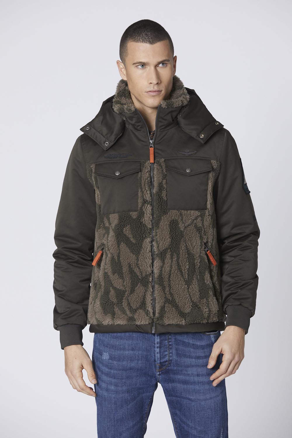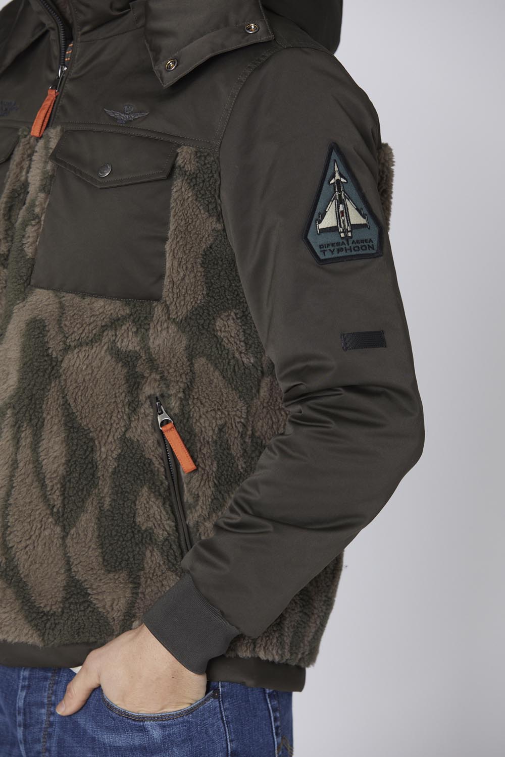 Tato bunda kombinuje dvě různé látky: měkkou žakárovou ekokůži s jedinečným maskovacím vzorem a lesklý nylonový taft. Výrazný design a úpravy oslavují operační roli velitele posádky a 36. křídla, zatímco odnímatelná kapuce dodává všestrannost.