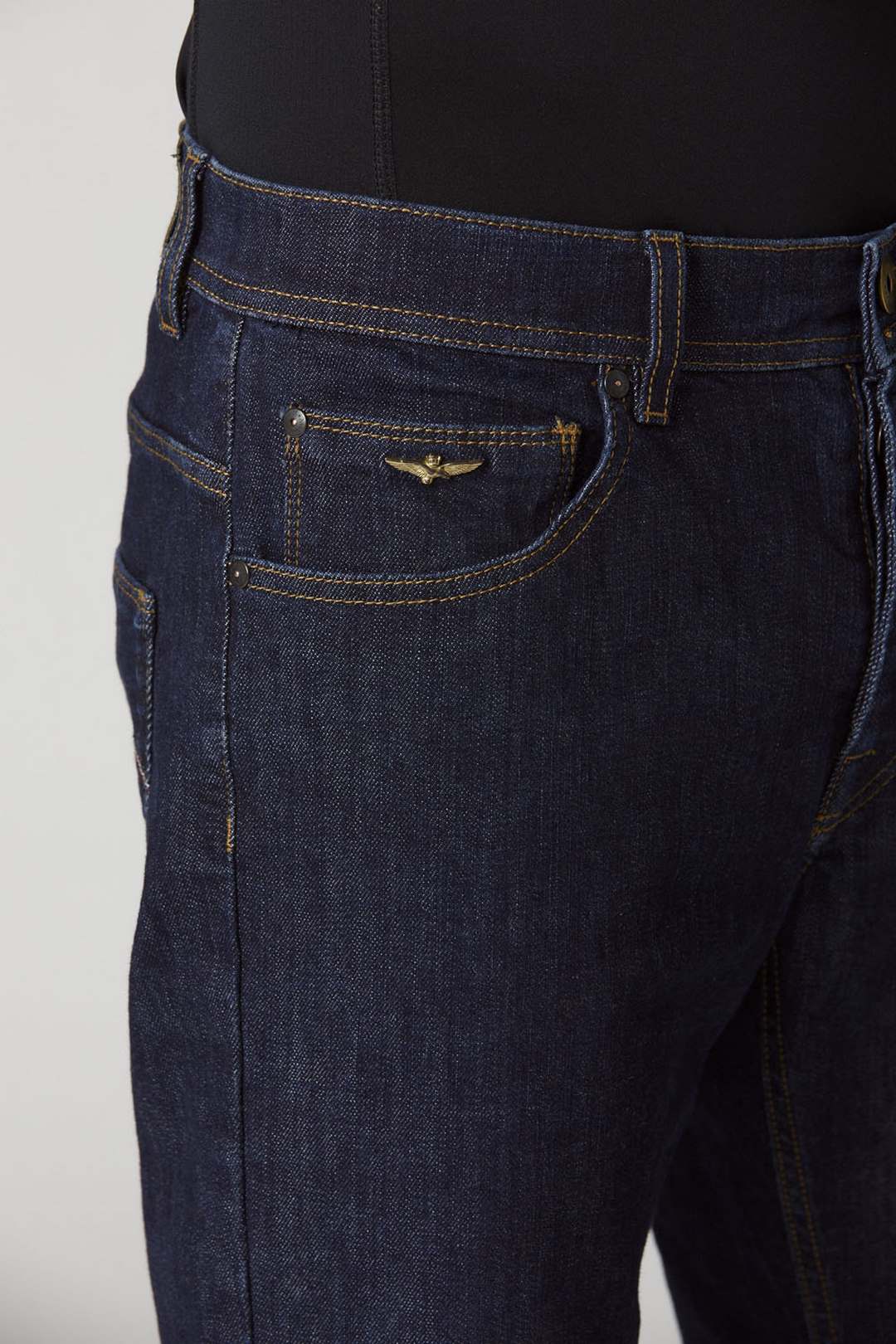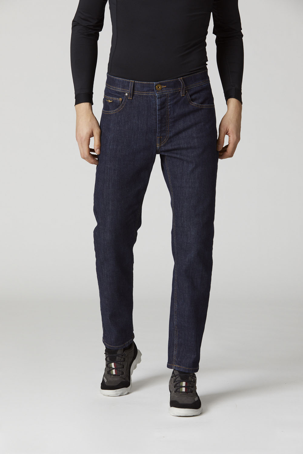 Tyto džíny s pěti kapsami jsou vyrobeny ze strečového denimu a zdobí je kovový orel a nášivka s logem. Jsou nezbytným doplňkem šatníku pro každodenní nošení a jsou k dostání v elegantním tmavě modrém odstínu, který se skvěle hodí k vašim zimním outfitům.