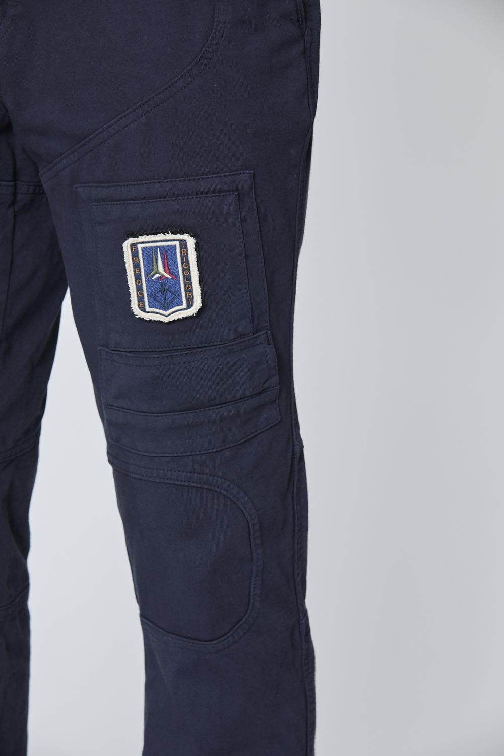 Tento ikonický styl Anti-G, inspirovaný vojenskými leteckými kombinézami, je nyní k dispozici v uvolněnější a ležérní verzi. Tyto kalhoty jsou vyrobeny z měkkého bavlněného žerzeje a mají žebrované manžety pro uvolněný, neformální vzhled. Charakteristické zadní kapsy jsou vylepšeny nášivkami Frecce Tricolori na novém indigovém základu, které jim dodávají charakter a vintage nádech.