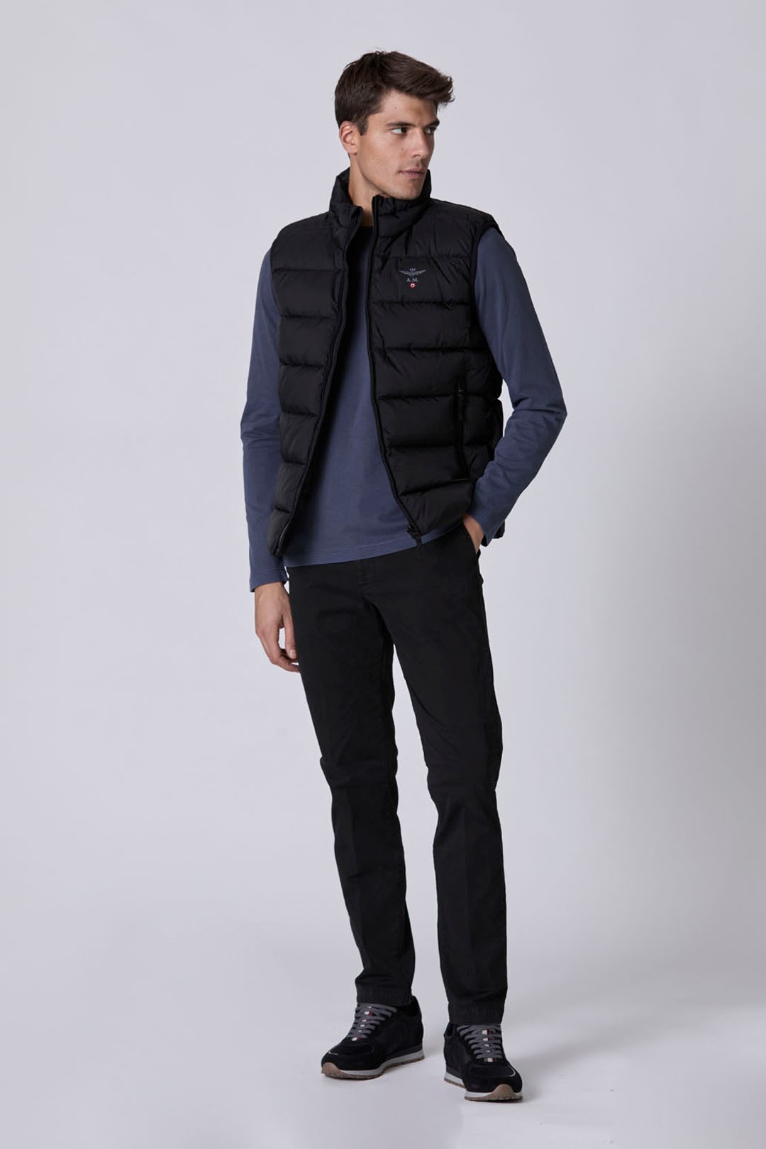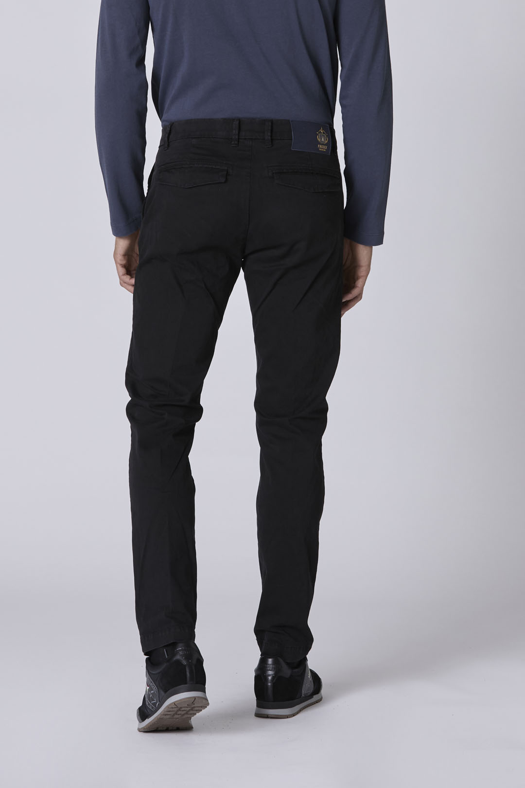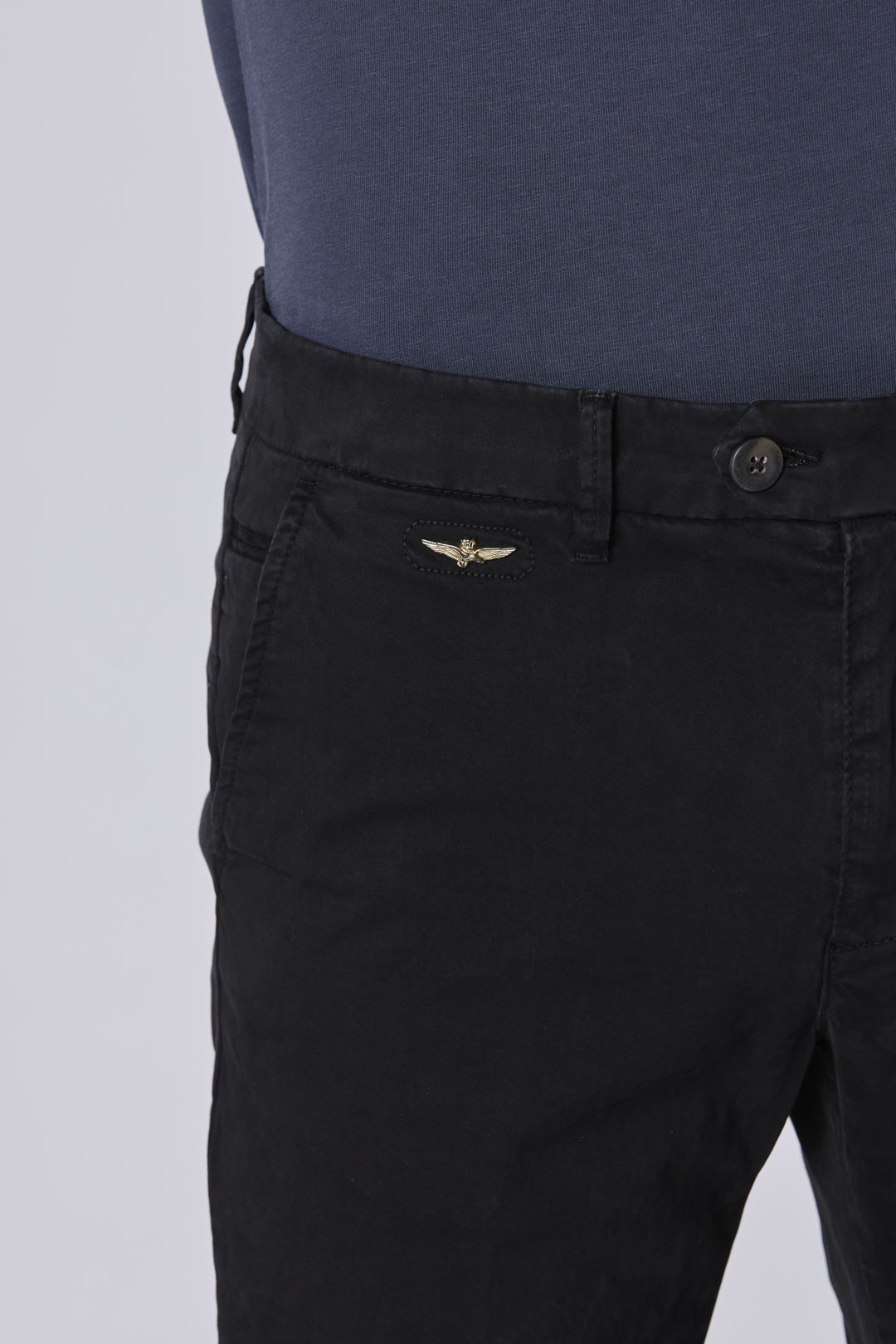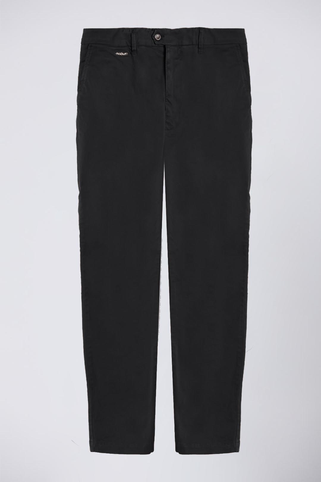 Strečové bavlněné chino kalhoty s rovnými nohavicemi, které se vyznačují ikonickým kovovým znakem orla a působí jedinečně a zároveň elegantně. Klasický a nepostradatelný kousek v šatníku každého muže.