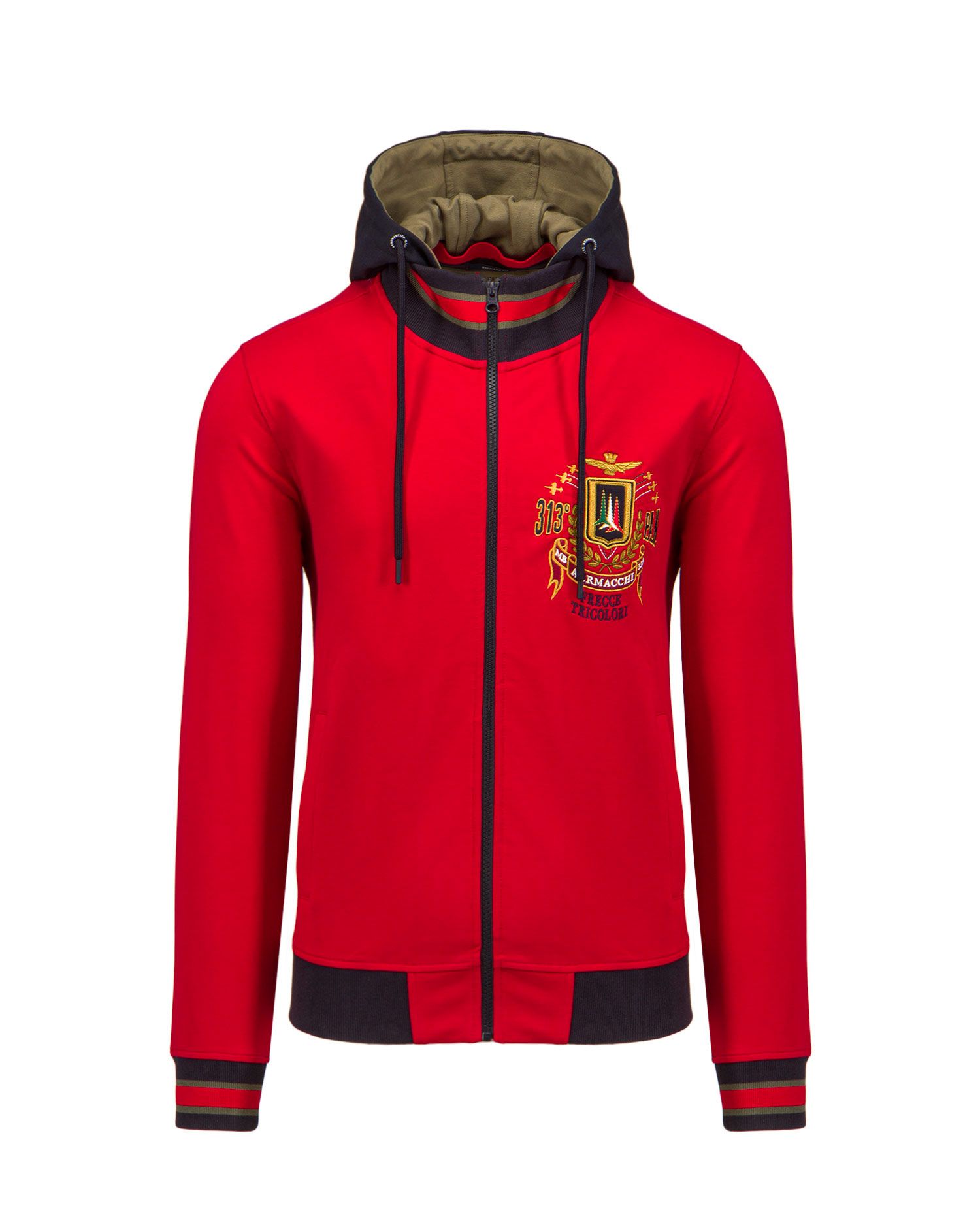 Tato mikina je vybavena vysokým límcem s odepínací kapucí a je zdobena propracovanými výšivkami, které vzdávají hold nejslavnějšímu akrobatickému týmu na světě. Tento oděv vyrobený ze strečové bavlny dodá každému městskému outfitu ležérní kouzlo a exkluzivní dojem.
