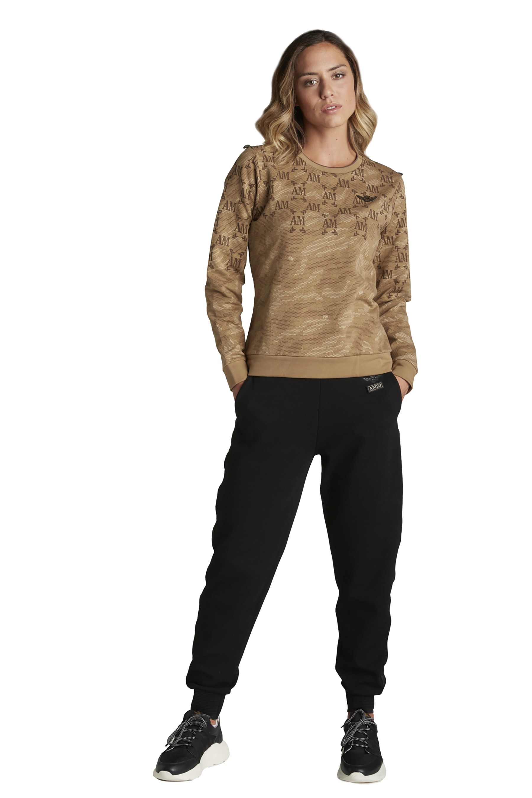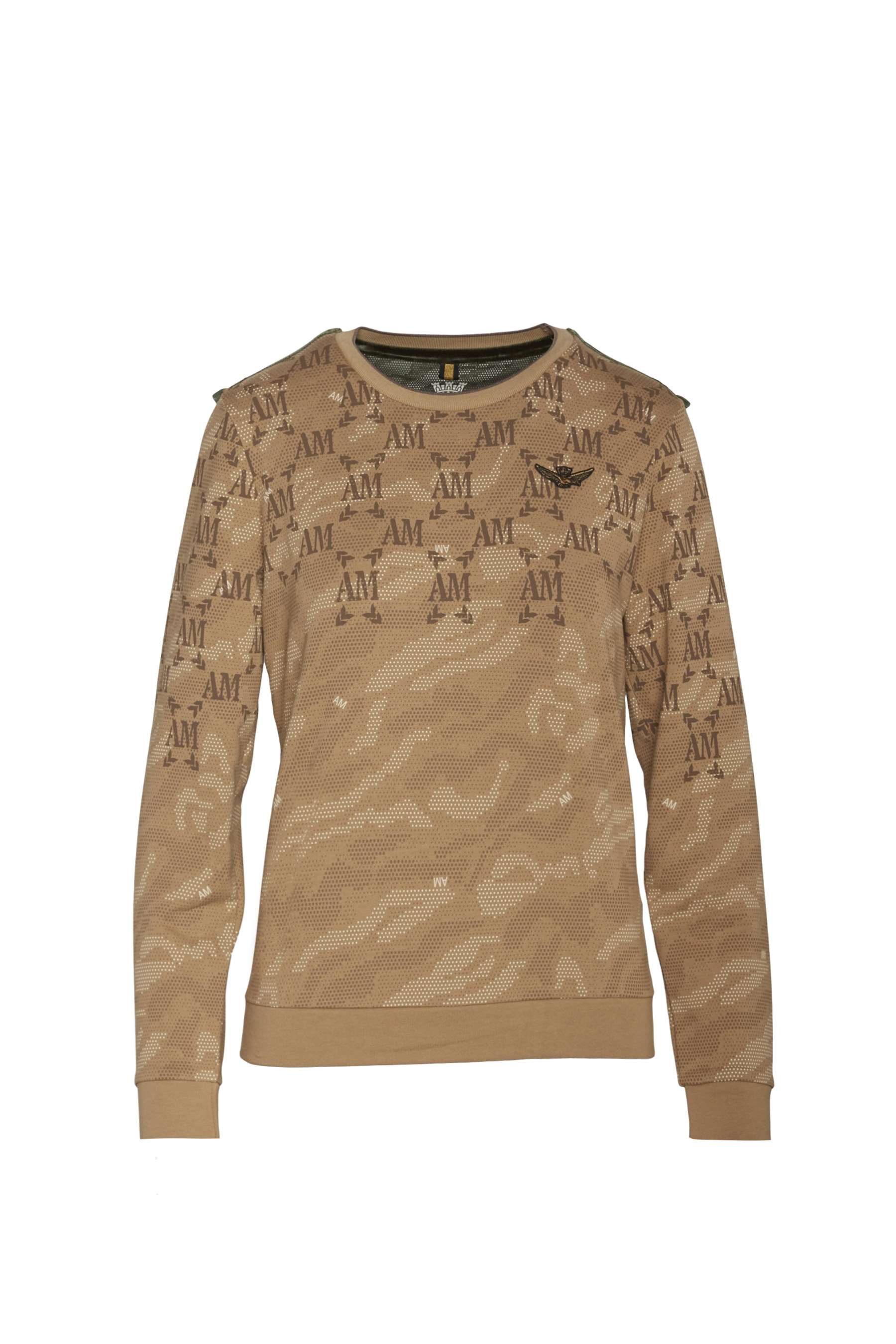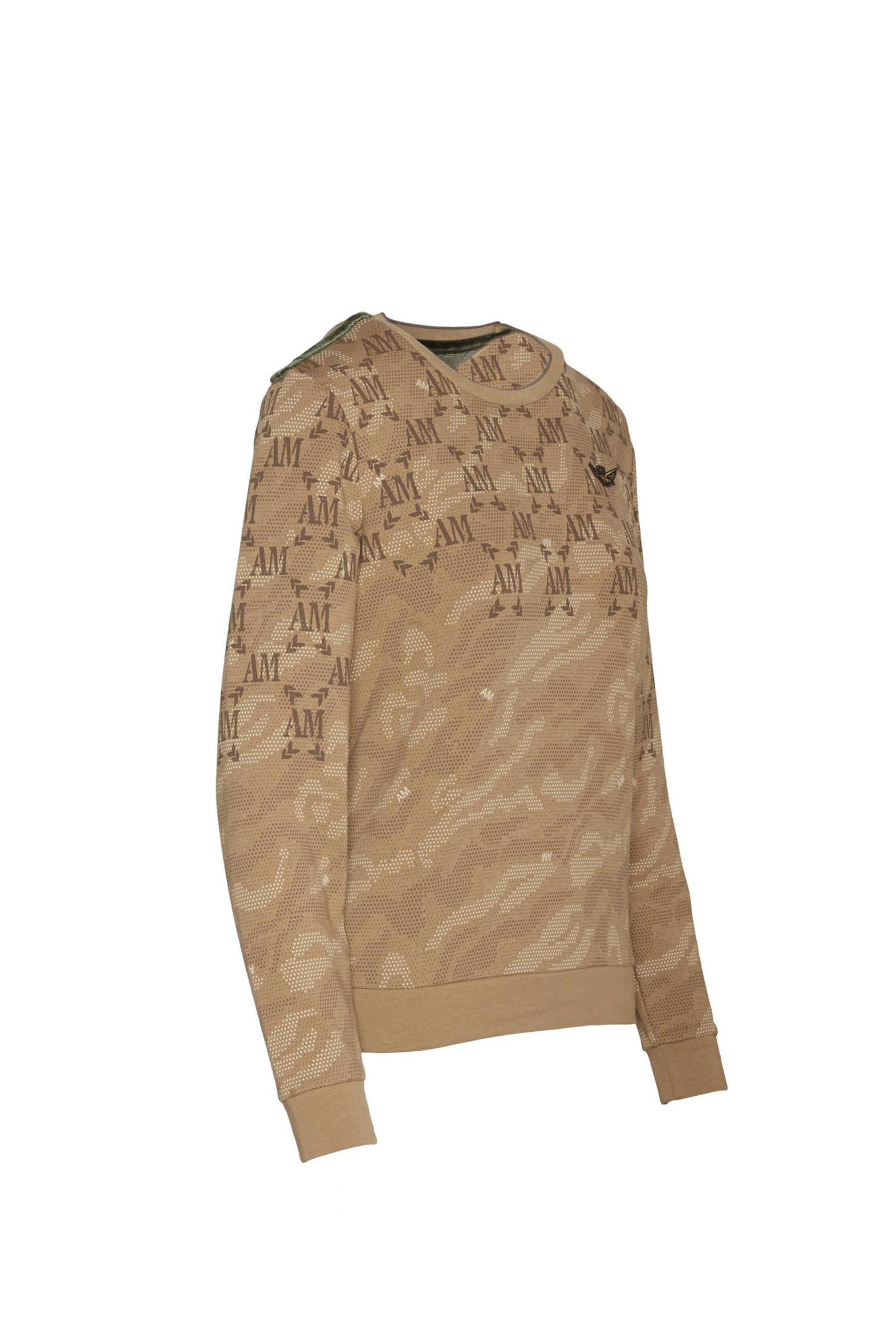 Rediscover the military-style with this crewneck sweatshirt characterized by a camouflage pattern and AM print.