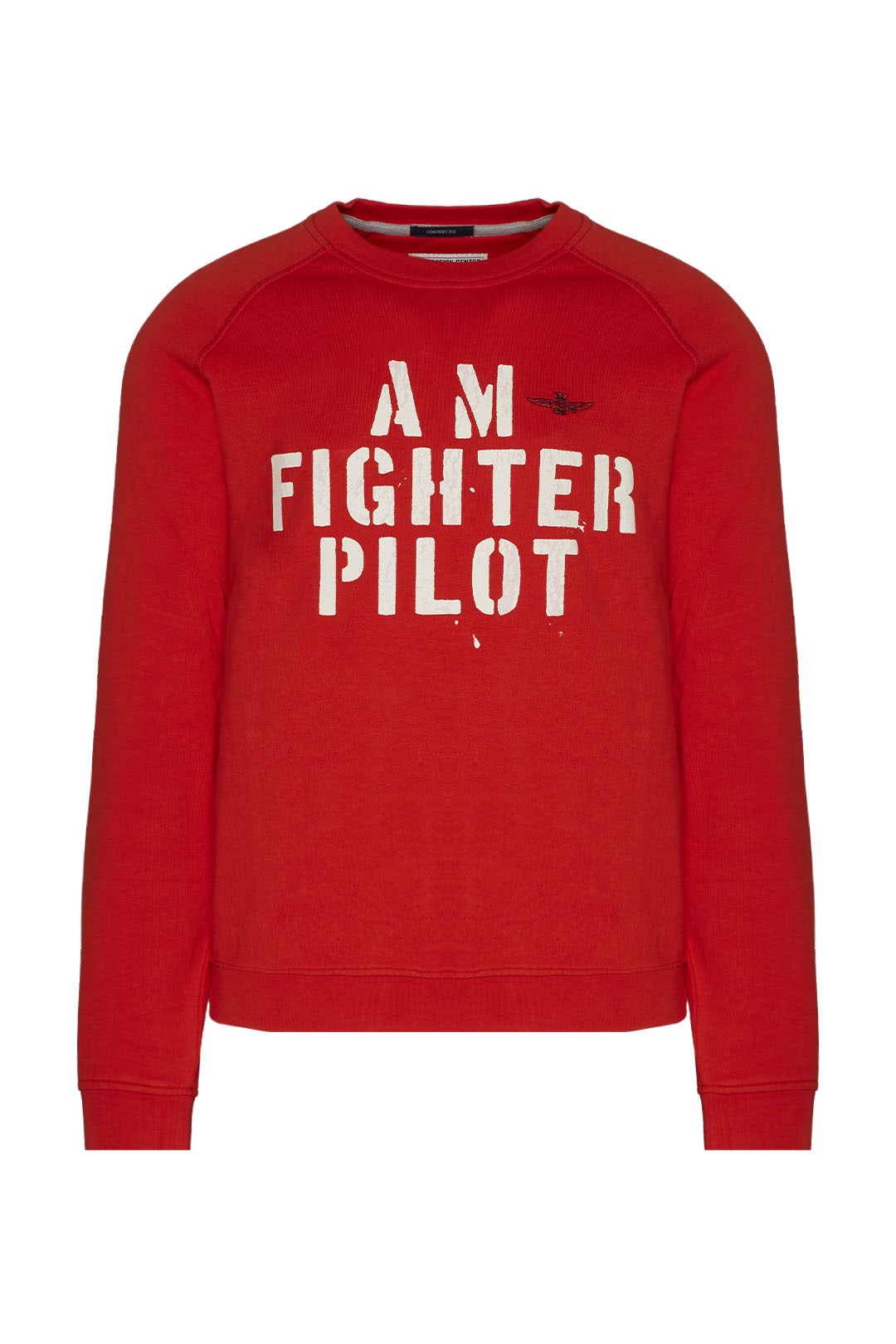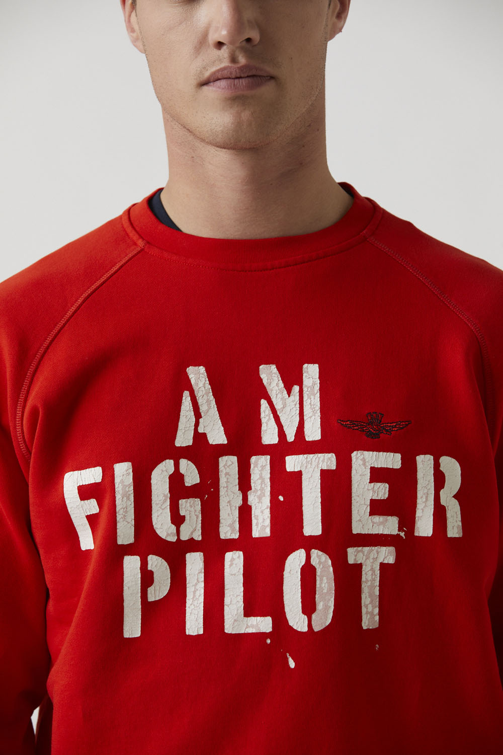 Sportovní, mladistvý duch této měkké bavlněné mikiny s výstřihem. Uprostřed vyniká potisk „AM Fighter Pilot“, grafický motiv převzatý z 61. křídla, jehož primárním posláním je poskytovat letecký výcvik a vzdělávání budoucích vojenských pilotů.