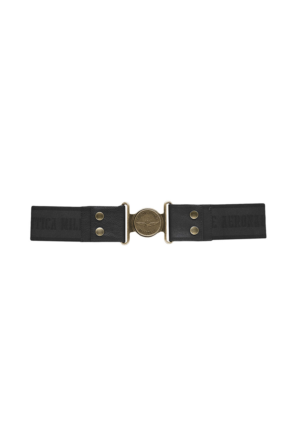 Dámský elastický pásek s efektní středovou sponou a personalizovanou stuhou s nápisem „Aeronautica Militare“. Noste ho k šatům pro zvýraznění siluety nebo přes sako, abyste dodali originální nádech stylu.