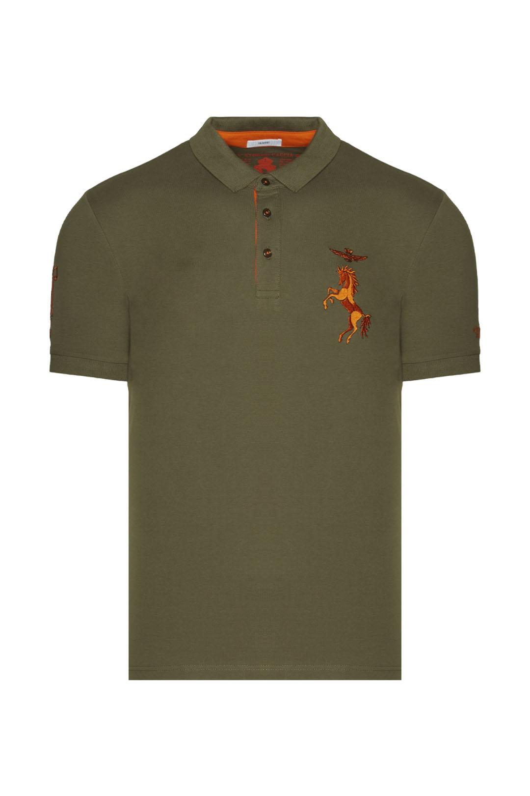 Symbol 4. křídla, vzpínající se kůň, vyniká ve hře kontrastů v této polokošili s krátkým rukávem z praktického strečového bavlněného piké.