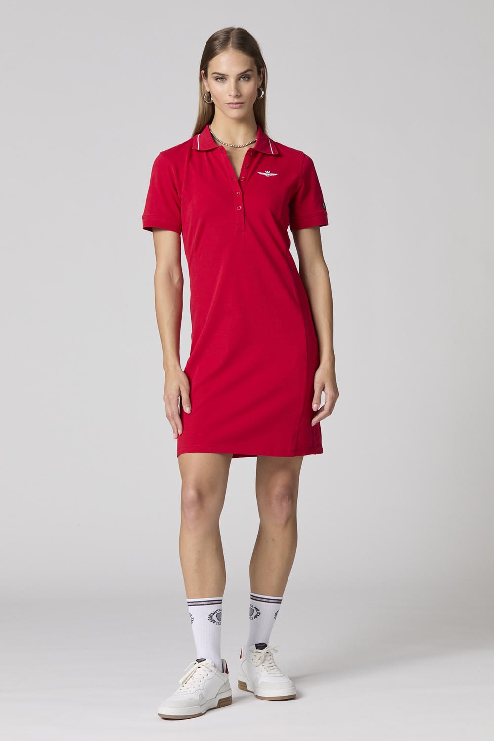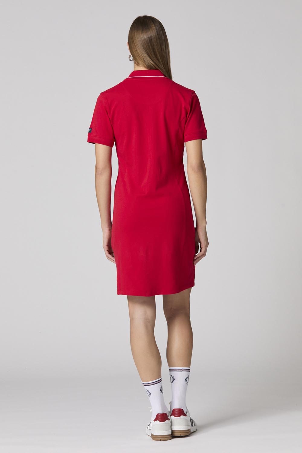 Dámské polo šaty z elastické bavlny, které snadno kombinují ženskost se sportovním stylem. Tyto šaty s moderním vypasovaným designem poskytují pohodlný střih, který tvaruje tělo a zároveň zajišťuje volnost pohybu. Jsou ideální pro ležérně elegantní vzhled, jsou univerzálním kouskem pro volný čas i neformální události a elegantně zvýrazňují siluetu.