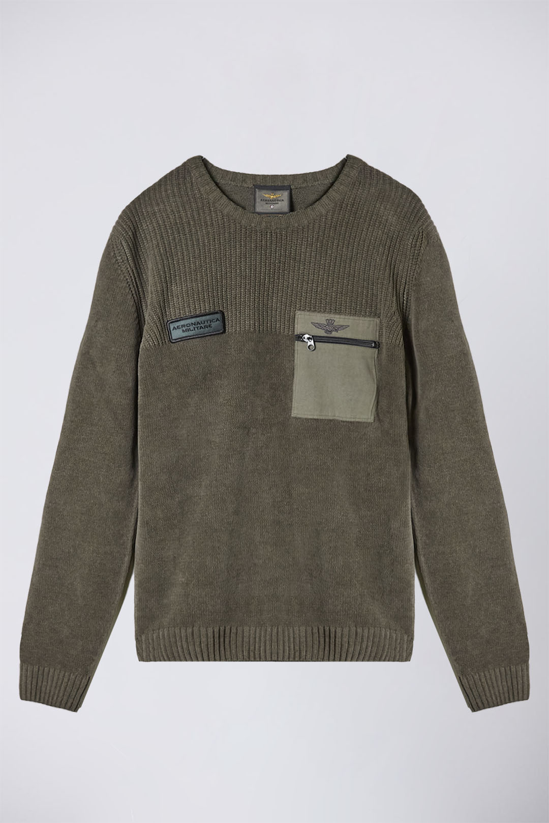Tento pánský svetr inspirovaný vojenským stylem přináší svěží nádech do každého zimního šatníku. Má praktický kulatý výstřih a oživuje ho směs různých pletených textur a kontrastní látková kapsa na zip.