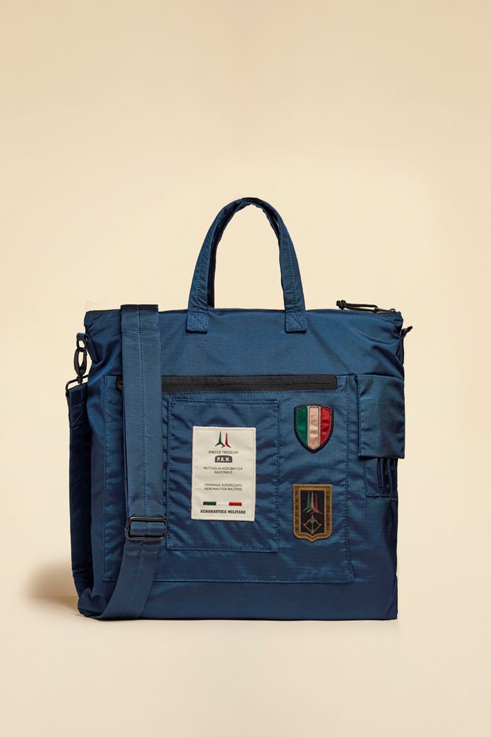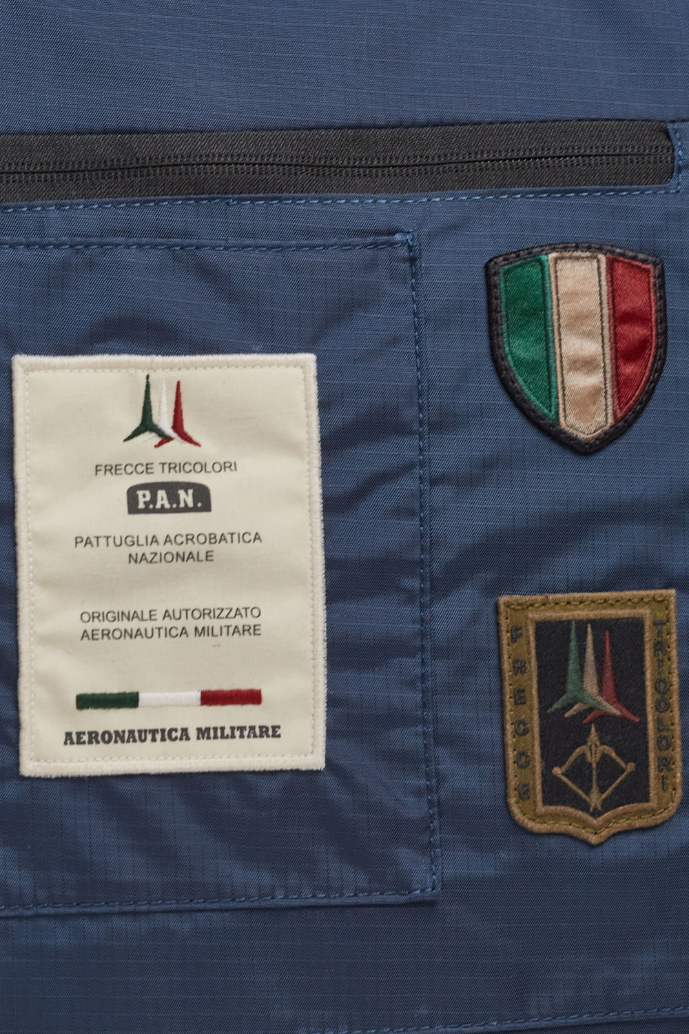 Velká přední kapsa na zip s nášivkami a personalizovaným štítkem pro jedinečný vzhled