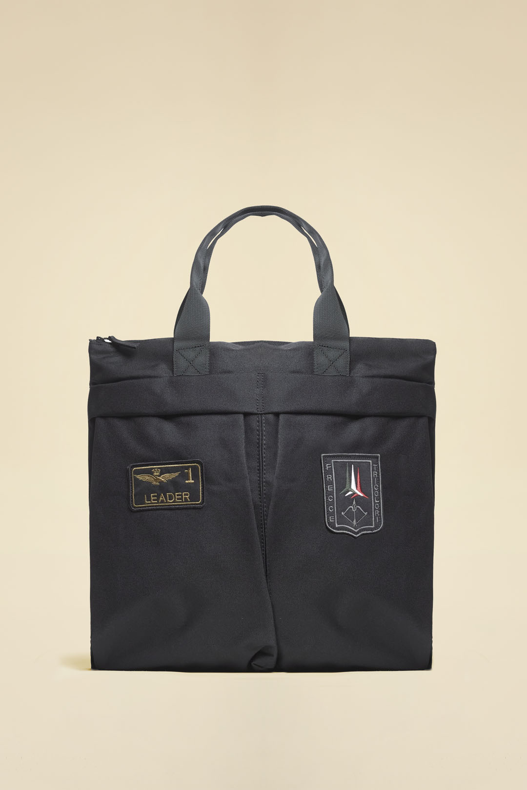 Tato taška na helmu je moderní reinterpretací originálního designu používaného piloty italského letectva. Přepracována do podstatně odolnější struktury z oxfordské tkaniny, spojuje praktické použití s autentickým vzhledem. Velké přední kapsy, zdobené exkluzivními nášivkami Frecce Tricolori, podtrhují její jedinečný charakter. Taška je ideální pro krátké výlety nebo víkendové pobyty, nabízí dostatek prostoru pro vaše nezbytnosti a zároveň zůstává stylovým doplňkem pro každou příležitost.