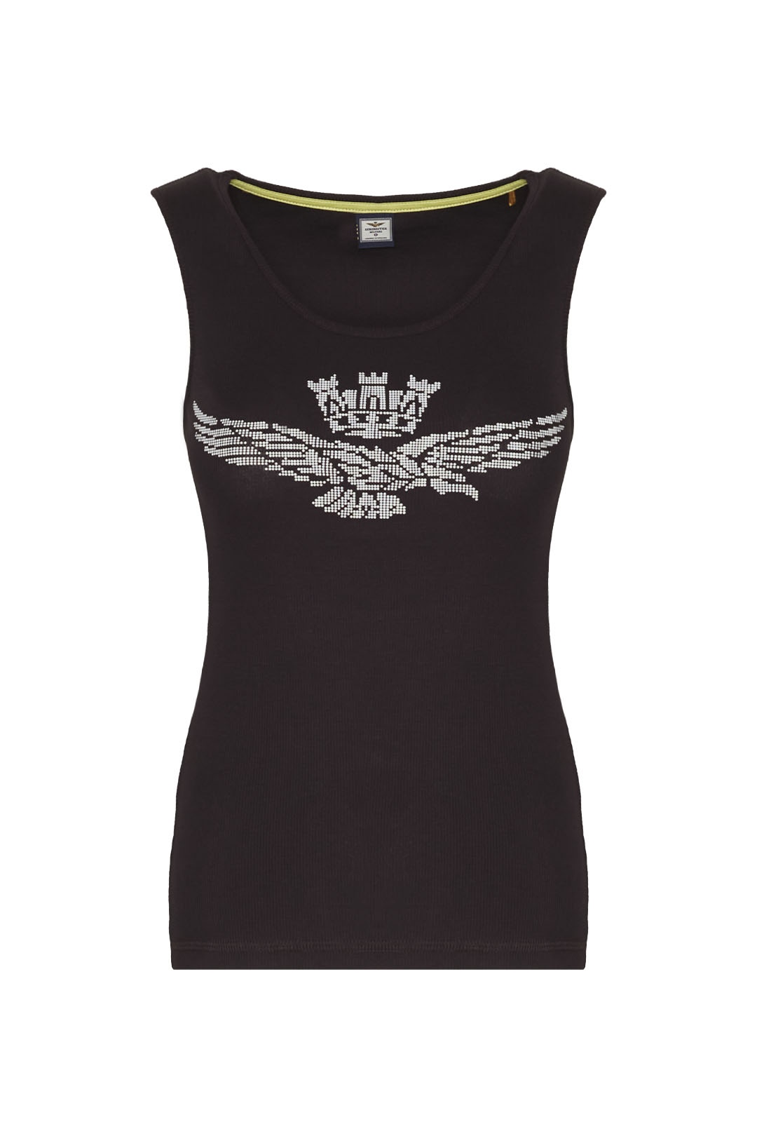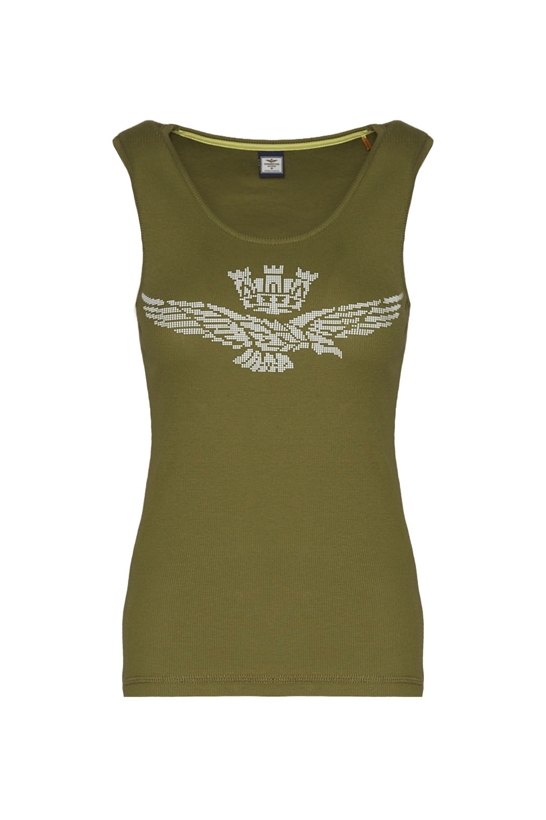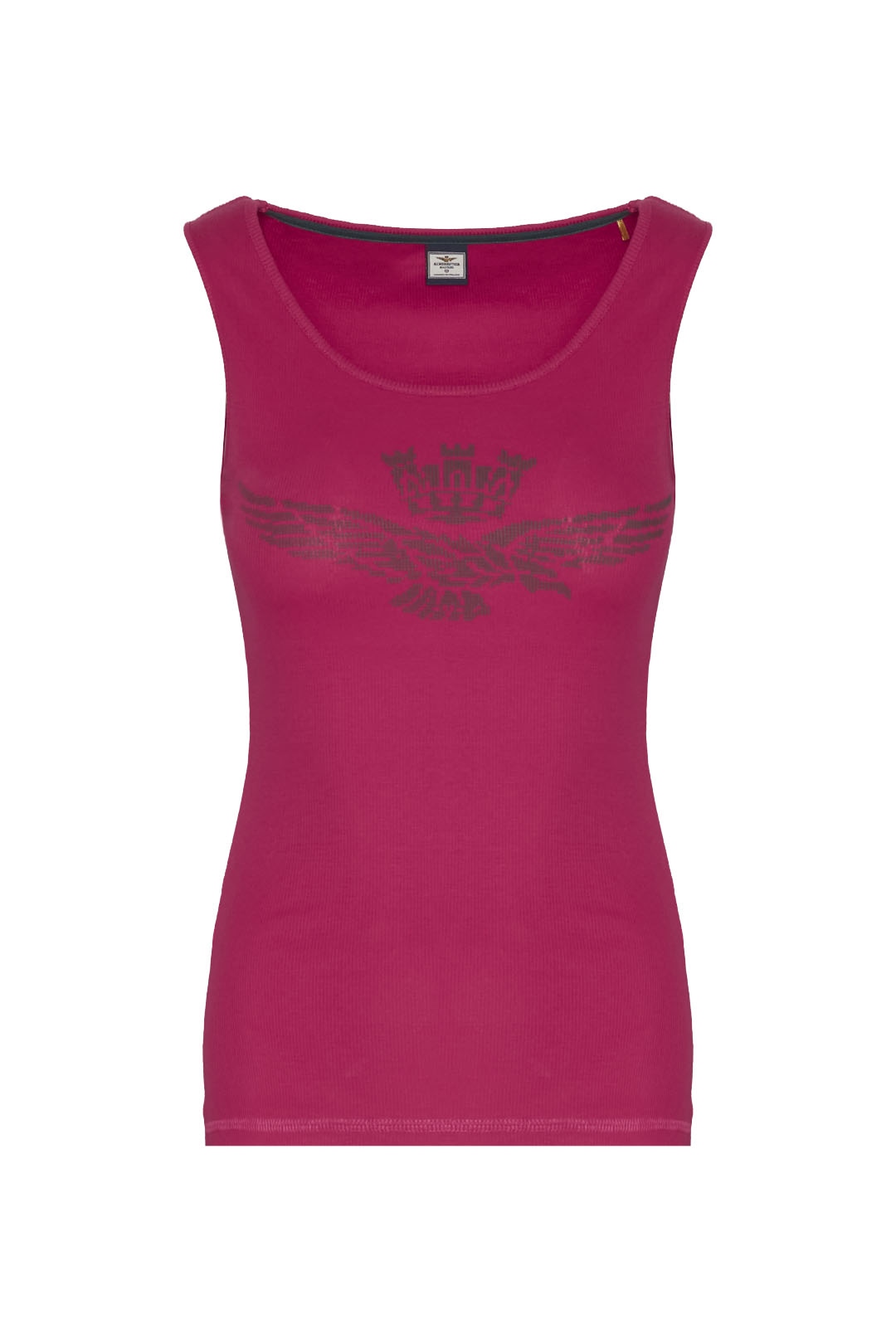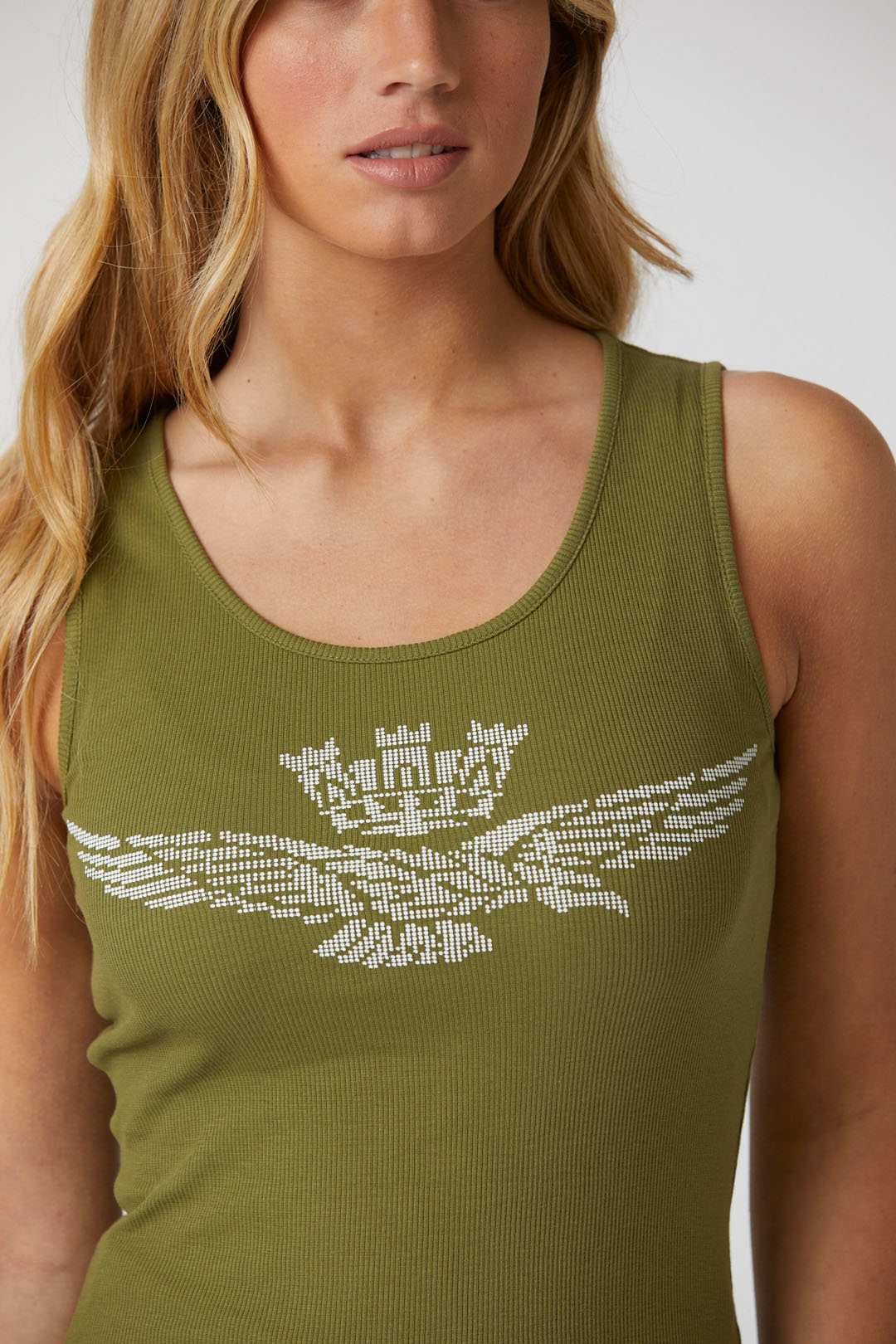 Toto pohodlné strečové bavlněné tílko s potiskem orla s věžičkou, dostupné v jasných a živých barvách, je základním oděvem, který nesmí chybět v žádném letním šatníku.