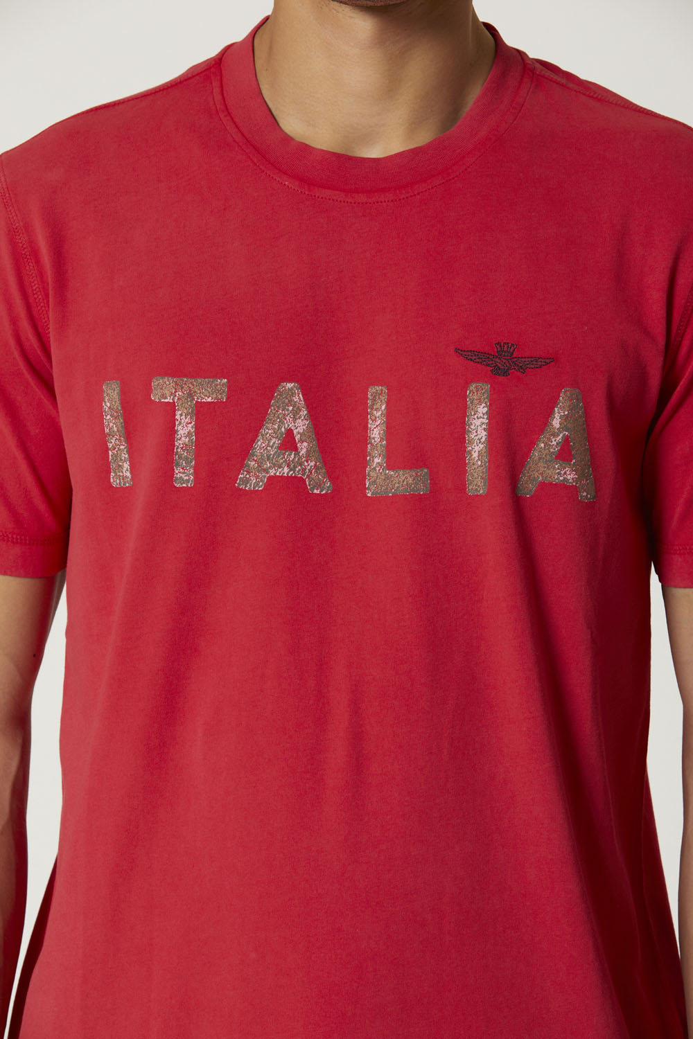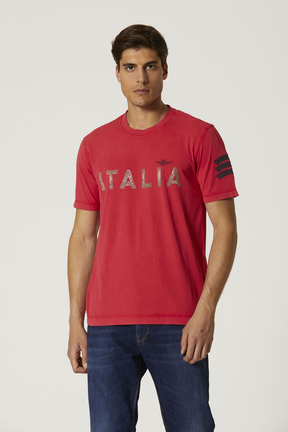 Slavnostní tričko, které patří k limitované edici kapsle věnované Getti Tonanti, italskému akrobatickému týmu založenému v roce 1953 v 5. křídle Villafranca di Verona. Potisky a nášivky, které jej zdobí, jsou archivní grafikou, která oděvu dodává exkluzivní a vintage vzhled.