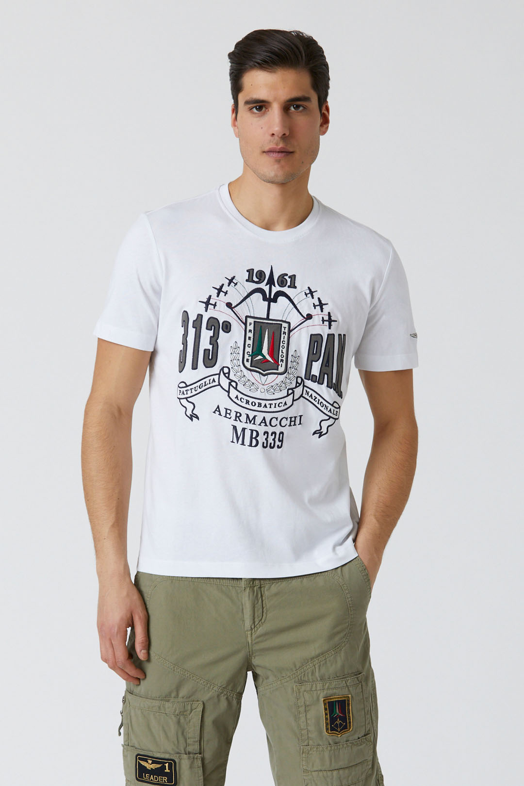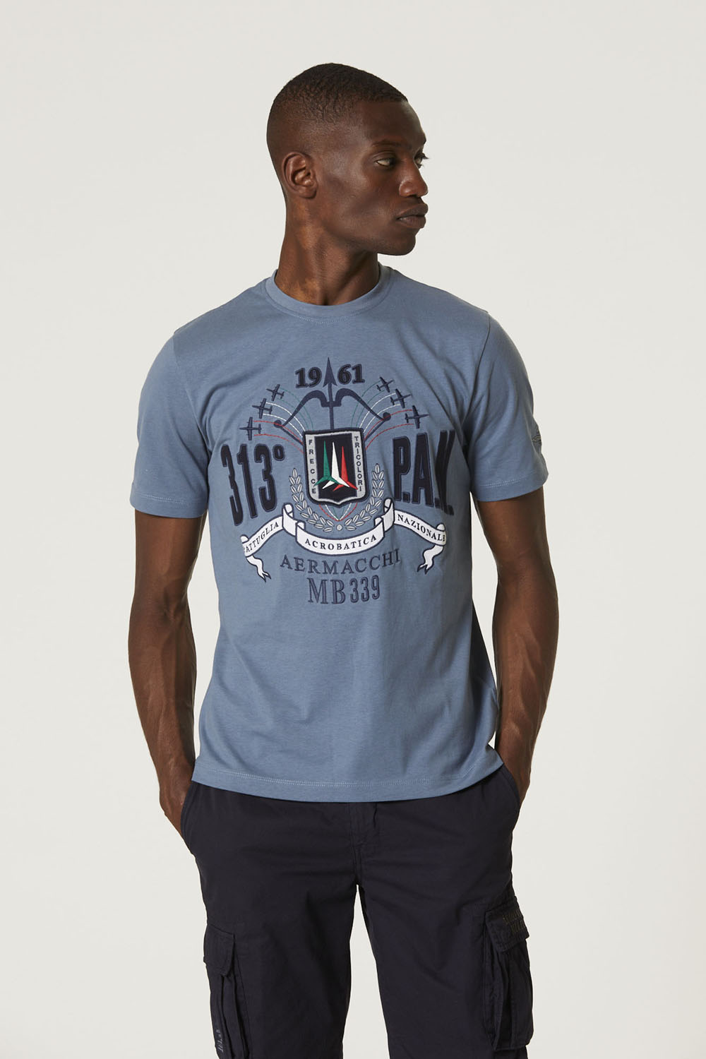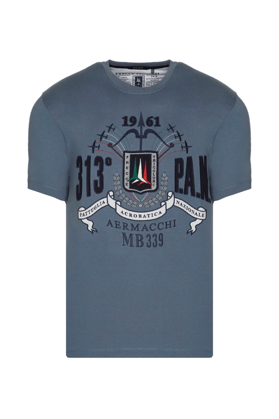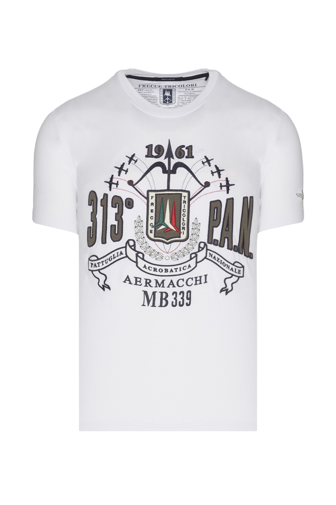 Rozpoznatelná výšivka pro silně aeronautický vzhled. Toto měkké bavlněné tričko oslavuje prestižní Frecce Tricolori, národní hrdost po celém světě.