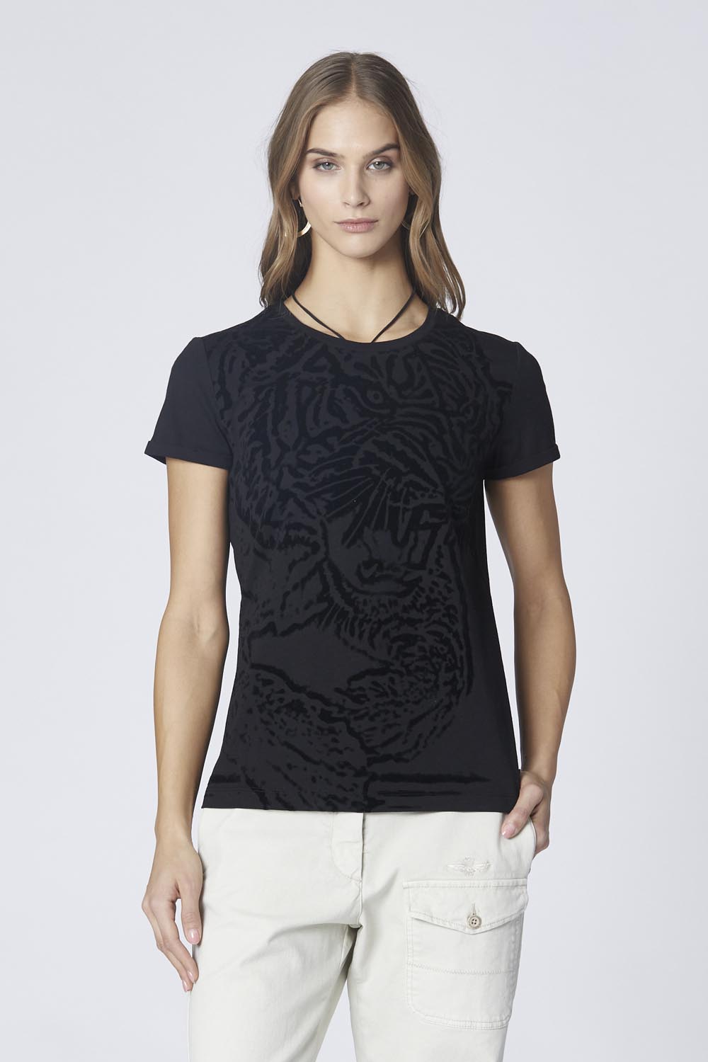Toto dámské tričko s krátkým rukávem vyniká minimalistickým designem, který je obohacen o originální potisk tygra. Symbolické zvíře představuje 21. skupinu italského letectva a dodává kousku výrazný a odvážný nádech. Tričko je vyrobeno s důrazem na detail a kombinuje styl a pohodlí, takže je ideální pro ty, kteří hledají ležérní vzhled se silnou osobností.
