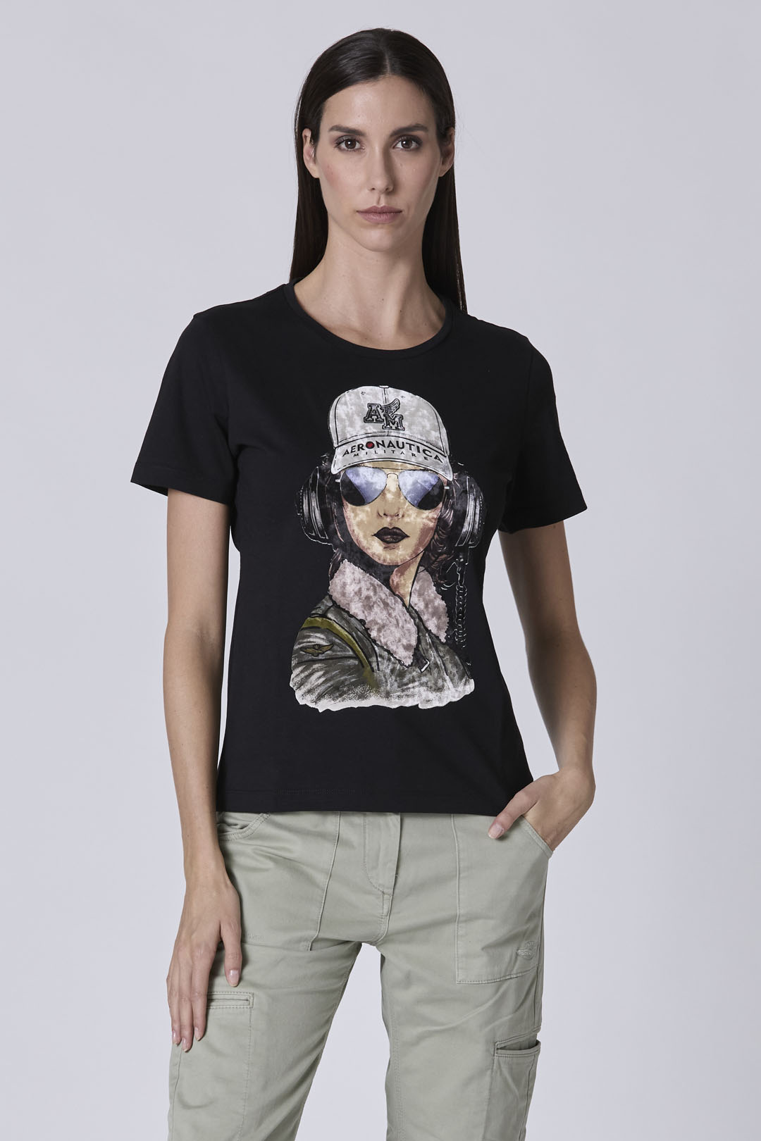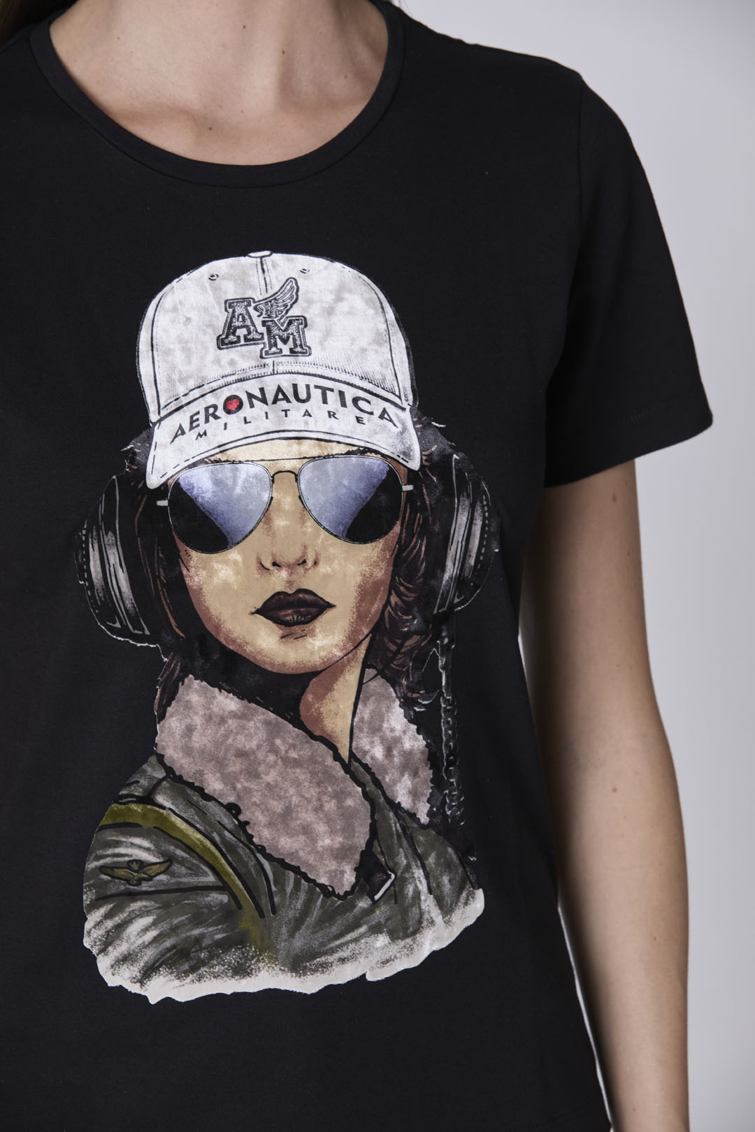 Toto dámské tričko má výrazný design s výraznou žinylkovou grafikou zobrazující pilotku, která vzdává hold bohaté letecké tradici italského letectva. Tento jedinečný detail dodává designu originalitu a charakter a oslavuje odhodlání a sílu pilotek.